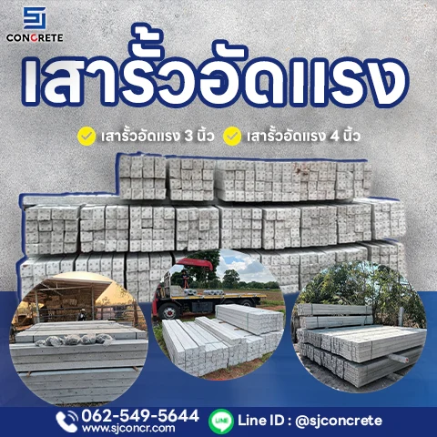 เสารั้วอัดแรงจาก SJ คอนกรีต ผลิตตามมาตรฐาน แข็งแรง คุ้มค่า ใช้งานได้ยาวนาน สนใจสอบถามเพิ่มเติมได้ที่